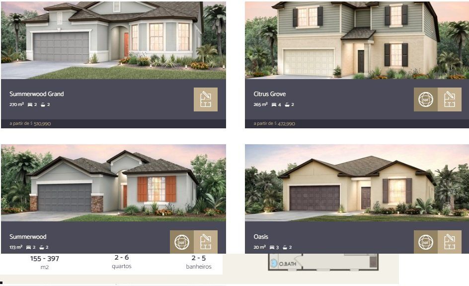 Localização: Wesley Chapel, FL, EUA Imóvel: Comunidade Crystal Lagoon, Epperson Metragem: 155 a 397 metros quadrados Preço: A partir de 394.990 USD (aproximadamente R$ 2.393.620) Quartos: 2 a 6 Banheiros: 2 a 5