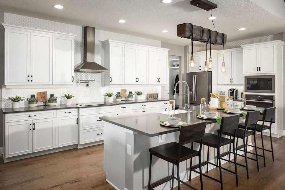 No interior, as novas casas oferecem vida de conceito aberto, espaços formais e salas flexíveis que podem funcionar de várias maneiras diferentes para atender às necessidades de sua família. Personalize sua nova casa com espaço extra, como uma sala bônus no andar de cima ou uma suíte do segundo proprietário. Adicione quartos e banheiros secundários adicionais ou melhore sua vida ao ar livre com varandas estendidas e varandas traseiras.